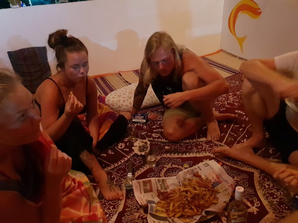 Am Abend aßen wir zu siebent 3 Fische – Tuna, Silver Jack und Red Snapper. Silver Jack war aller Favorit. Wir zahlten Rupies 400 (€5) pro Person mit Trinkgeld 👏.