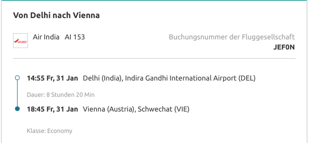 31.01.2020 – Neu Dehli => Wien