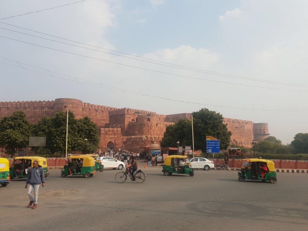Nach einem Frühstück im Hotel, buchte ich ein Bussticket INR 600 (€7,50) für die Rückfahrt nach Dehli und ein TuckTuck INR 450 für den weiteren Tag. Da die Züge nach Delhi von weit her kommen, und eventuell bzw. oft viel Verspätung haben, wurde mir der Bus empfohlen.
