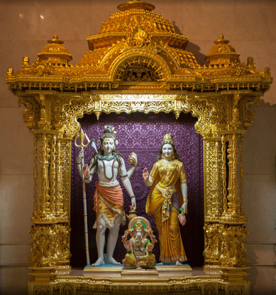 Absolutes Highlight von Akshardham ist das zentrale Monument des Komplexes, ein über 40 Meter hoher und knapp 100 Meter breiter Tempel aus rosa Sandstein und italienischem Carrera-Marmor ganz ohne Stahl oder Beton. Seine atemberaubende Fassade mit 9 gewaltigen Kuppeln ist über und über mit meisterhaften Gravuren und Schnitzereien von kunstvoll gefertigten Blumen, Tieren, Mythologien, Tänzern, Musikern und Gottheiten bedeckt. Die Dächer des friedlichen Märchenpalastes werden von insgesamt 234 Säulen gestützt, die ebenfalls alle kunstvolle Verzierungen aufweisen.