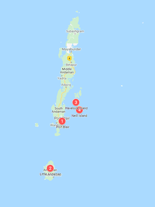 Resümee von den Andamanen: „Little Andaman“ ist mein Favorit. Ruhige Insel mit vielen Stränden, die leider aber selten sauber sind. Plastikmüll !! 4-5 Tage zu empfehlen. An zweiter Stelle kommt bei mir „Neil Island“. Kleiner als Little Andaman aber nicht so schöne Strände und wegen der Ebbe die meisten davon untertags nicht zum schwimmen geeignet. 3-4 Tage zu empfehlen. Dann noch „Havelock Island“, die eigentlich nur vom Beach No. 7 lebt und teuer als die anderen beiden Inseln. 2-3 Tage zu empfehlen.