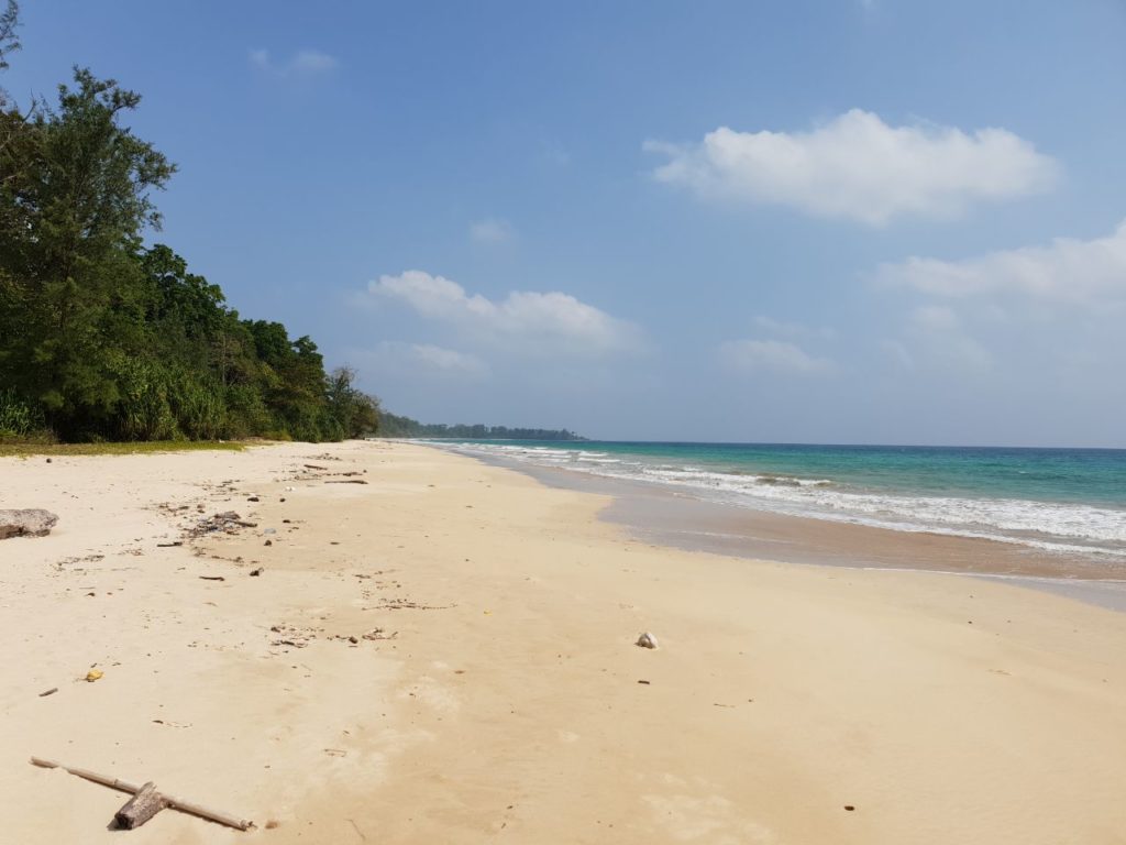 Nette Unterkunft mit kleinen einfachen Häuschen. Nach einem Frühstück „Puri“ mietete ich ein Moperl in der Unterkunft, besorgte mir ein Rückfahrtticket nach Port Blair für den 15.01.2020 / 21:00 und weiter nach Havellock am 16.01.2020 / 14:00 und fuhr ein Stück der Insel ab. Besuchte einen Internetshop, machte einen Einkauf in einer Bäckerei und fuhr zurück zur Unterkunft. Gab mich ein bisschen den warmen Meer und seine Wellen hin. Der feinkörnige helle Sand des kilometerlangen, menschenleeren Strandes ist wunderschön. Aber leider auch ein bisschen verunreinigt. Aß in der Unterkunft ein Fischsteak und ging schlafen.